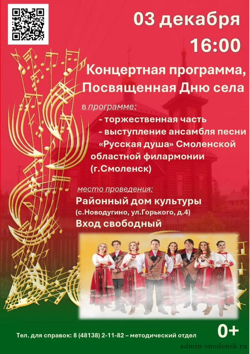 3 декабря в 16:00 в Районном Доме культуры состоится праздничная концертная программа, посвящённая Дню села Новодугино