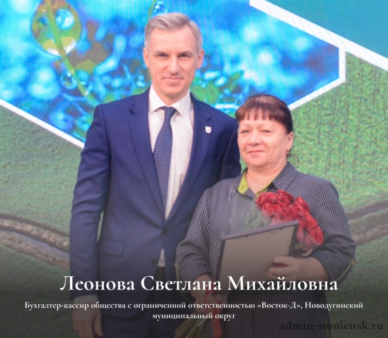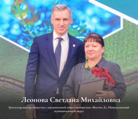• Леонову Светлану Михайловну — бухгалтера-кассира ООО «Восток-Д» (Почетная грамота Министерства сельского хозяйства России);