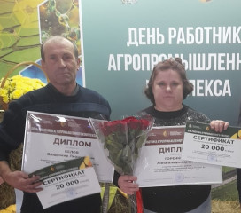 Также, за достижение высоких производственных показателей в сельскохозяйственном производстве Смоленской области были вручены сертификаты на 20 000 рублей механизатору АО "Племенной завод "Рассвет-Д" Белову Владимиру Леонидовичу и оператору машинного доения АО "Племенной завод "Рассвет-Д" Горенковой Анне Владимировне.
