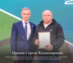 • Иванову Сергею Владимировичу — механизатору Корнеевского отделения-бригады Печеничено ООО «Восток-Д» (Почетная грамота Министерства сельского хозяйства России);