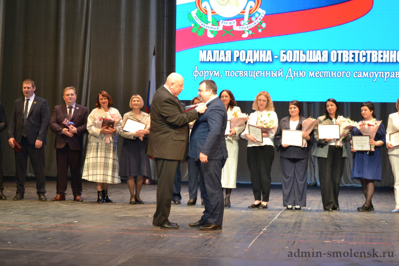 24 апреля в Смоленском драматическом театре состоялся масштабный форум «Малая родина – большая ответственность», объединивший более 700 участников со всей Смоленщины. Это событие стало ярким признанием заслуг тех, кто ежедневно работает для развития наших муниципалитетов.