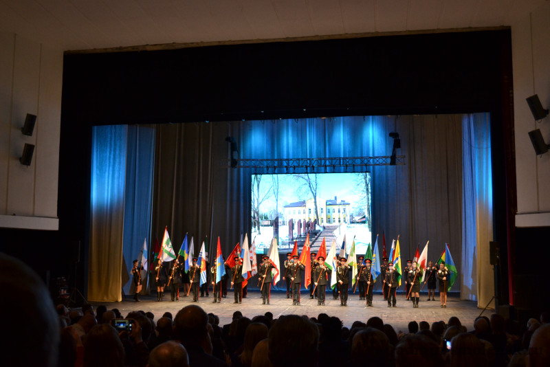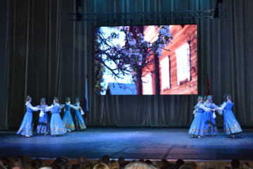 Официальную часть украсили выступления лучших творческих коллективов, а финальным мощным аккордом стал торжественный вынос флагов всех муниципальных образований Смоленщины.