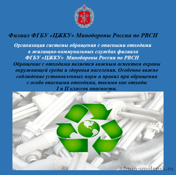 - Организация системы обращения с опасными отходами в жилищно-коммунальных службах филиала ФГБУ «ЦЖКУ» Минобороны России по РВСН