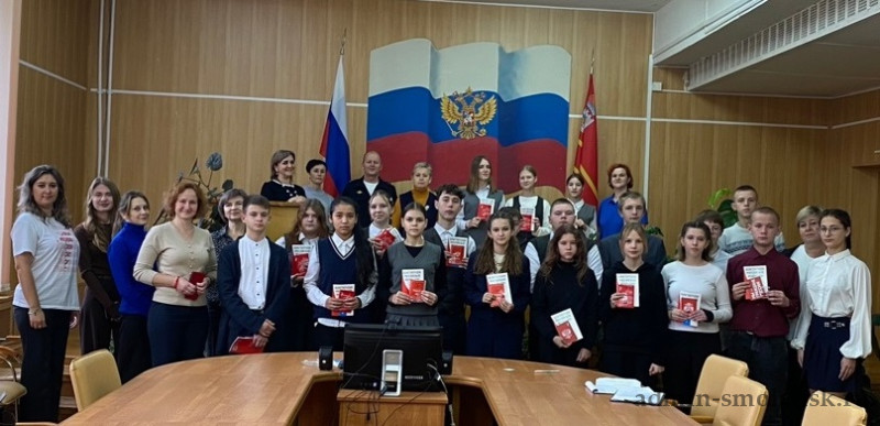 11 ноября в актовом зале администрации Новодугинского округа состоялось торжественное вручение паспортов юным жителям в рамках всероссийского проекта «Мы — граждане России». Инициатива реализуется Движением Первых.