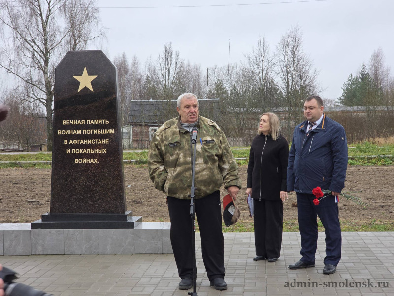 - В Новодугинском округе состоялось открытие памятника воинам, погибшим в Афганистане и локальных войнах